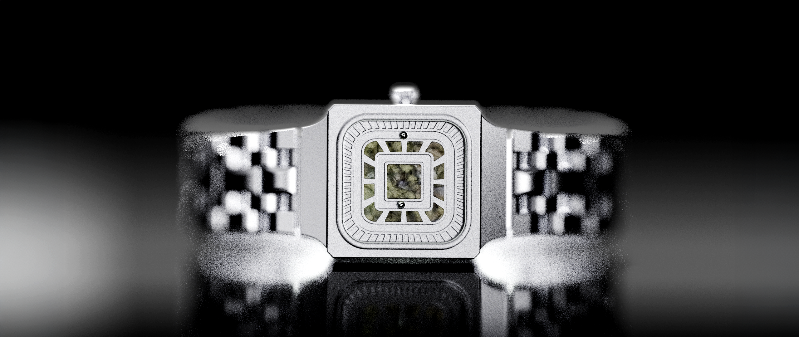 Forget about conventional watch hands. Instead, two magical spheres orbit to tell you the time. The inner sphere indicates hours, and the outer indicates minutes.